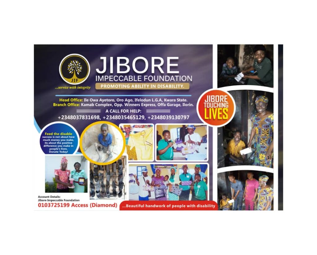 Supporting people living with disability is part of our duty to humanity at jibore impeccable foundation.